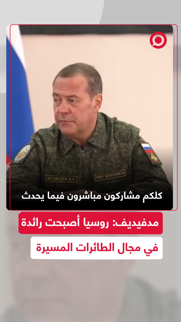 Play/Pause Mute/Unmute مدفيديف: روسيا أصبحت رائدة عالميا في مجال الطائرات المسيرة Save post Share Facebook X VK.com Telegram