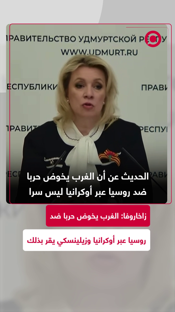 Play/Pause Mute/Unmute زاخاروفا: الغرب يخوض حربا ضد روسيا عبر أوكرانيا وزيلينسكي يقر بذلك Save post Share Facebook X VK.com Telegram