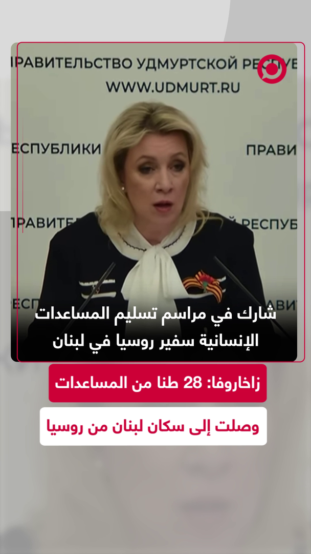 Play/Pause Mute/Unmute زاخاروفا: 28 طنا من الغذاء وصلت إلى سكان لبنان من روسيا Save post Share Facebook X VK.com Telegram